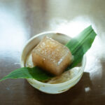 気配り上手の静子さんは、恵美子さんの隣で味見をしながらそう言います。「もち米が透明になっもち米一升につきお醤油は1合と決まっているてから味をつけるんよ。そうしないと芯ができるから」と、30分ほど蒸した数粒のもち米を手渡してくれました。