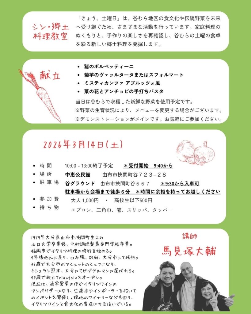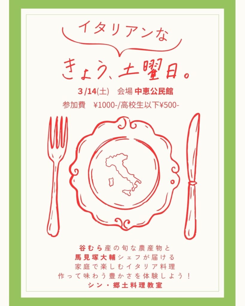 今回は、同プロジェクトの一環として、谷むらで収獲した食材を活用した料理教室「きょう、イタリアン🇮🇹な土曜日。」を開催することが決定しました!