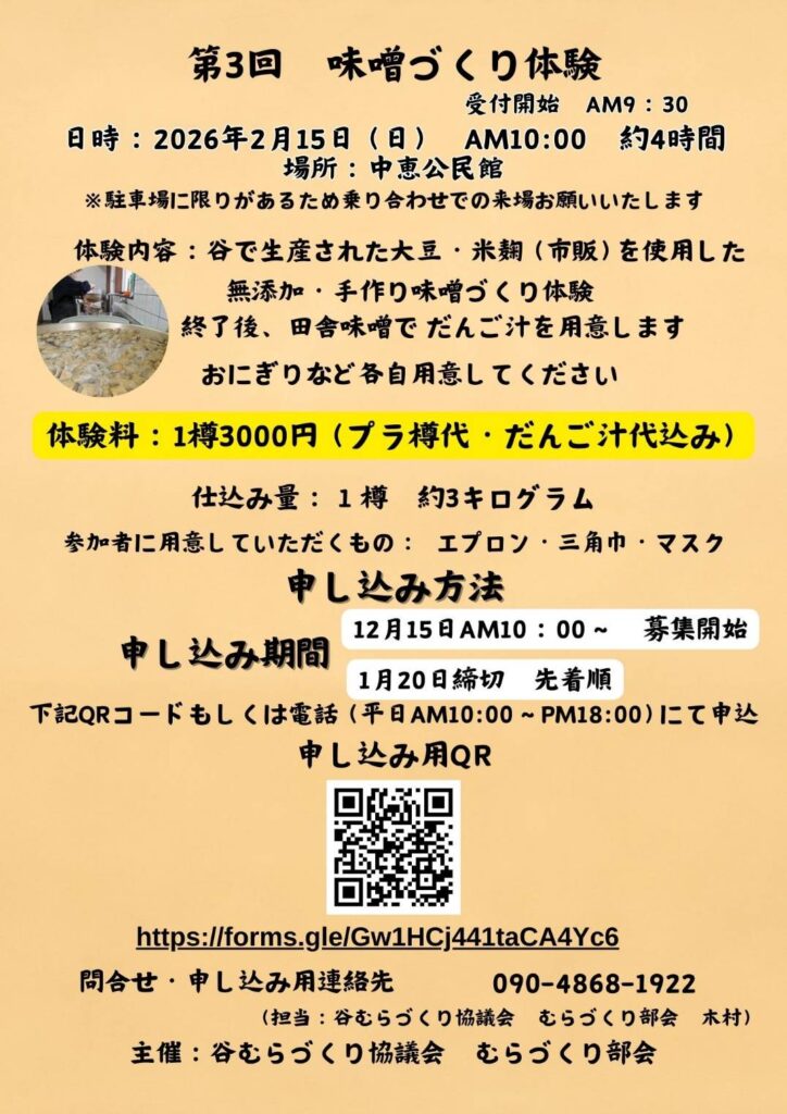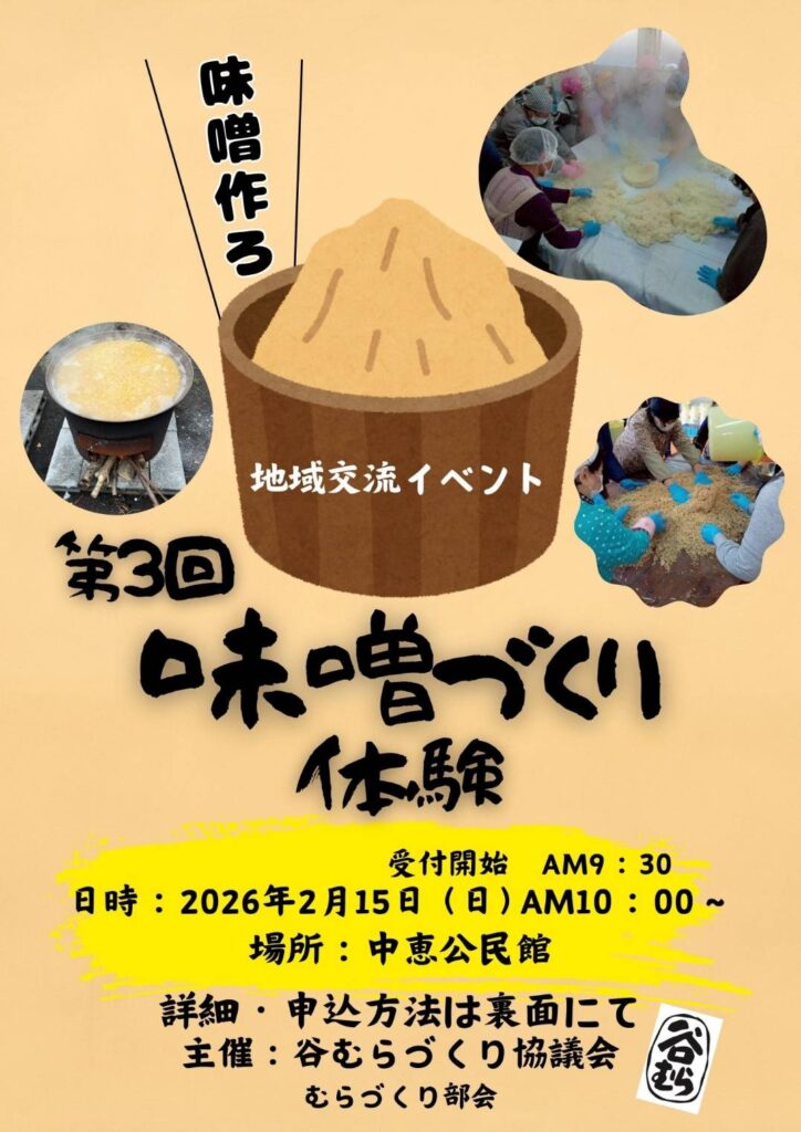 毎年恒例となってきました「味噌づくり体験」を来年も開催いたします。是非、皆さまお誘いあわせの上、ご参加ください!